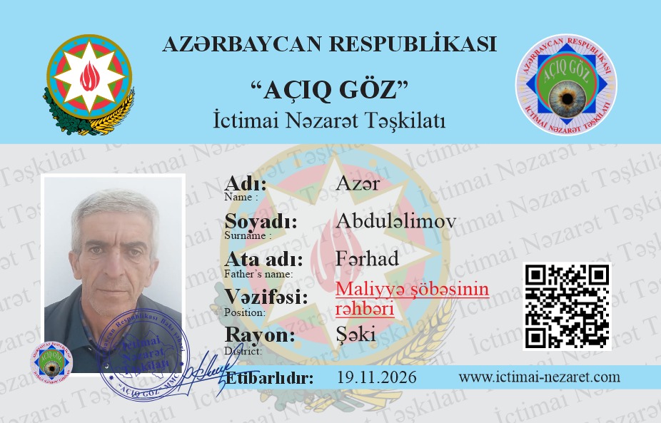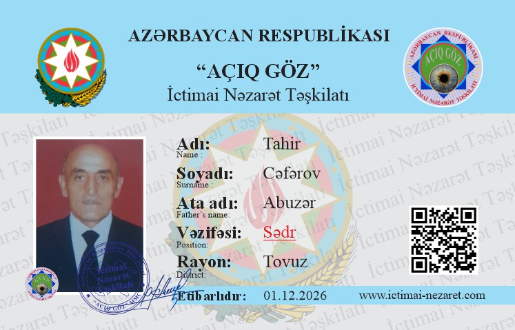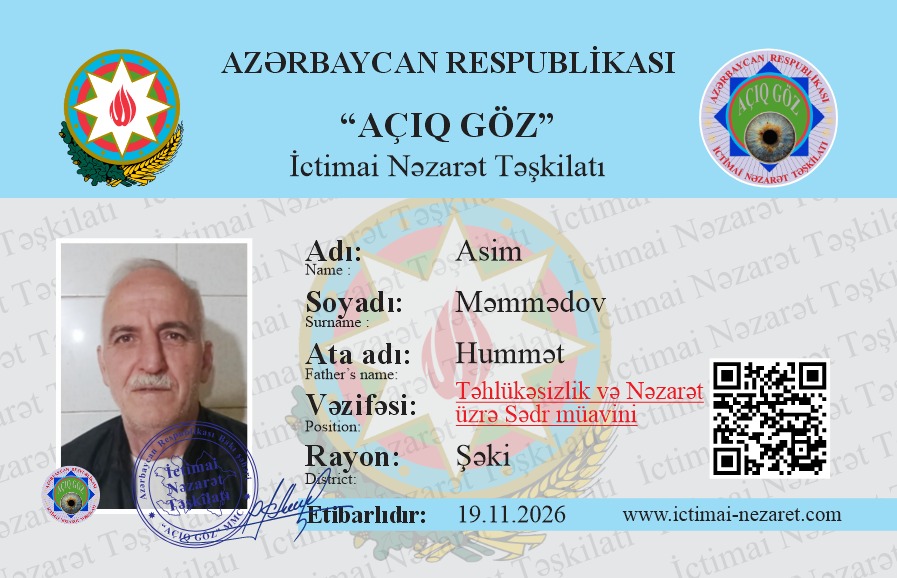 “AÇIQ GÖZ” MMC-nin tərkibində fəaliyyət göstərən İCTİMAİ NƏZARƏT CƏMİYYƏTİ əməkdaşlarının İCTİMAİ ƏSASLARLA FƏALİYYƏTİ HAQQINDA ƏSASNAMƏ